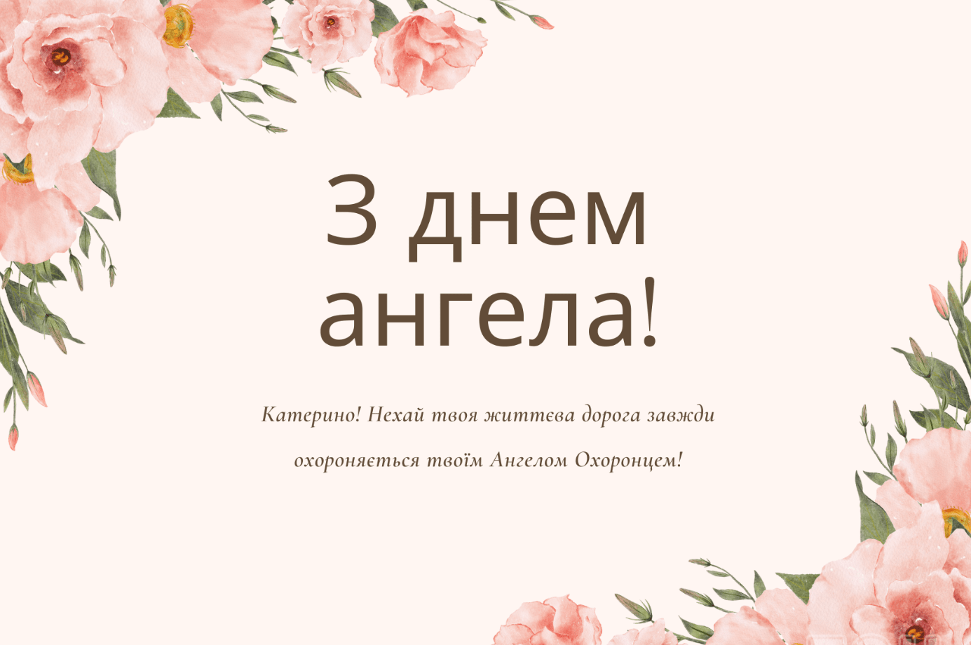 Катерино, вітаю зі святом! Нехай твій ангел завжди оберігає тебе, даруючи впевненість і спокій. Бажаю, щоб у твоєму житті було більше посмішок, тепла та незабутніх миттєвостей.