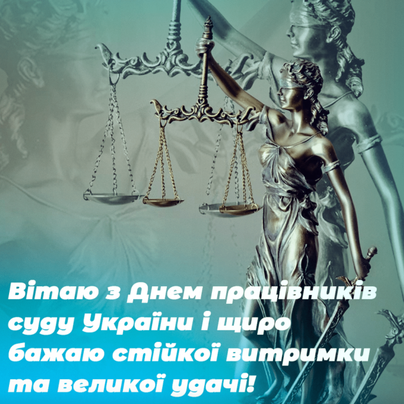 Вітаю з Днем працівників суду України та бажаю здоров’я, терпіння, сил і бездоганного професіоналізму, а також удачі, кохання, достатку і щастя для повноцінного життя.