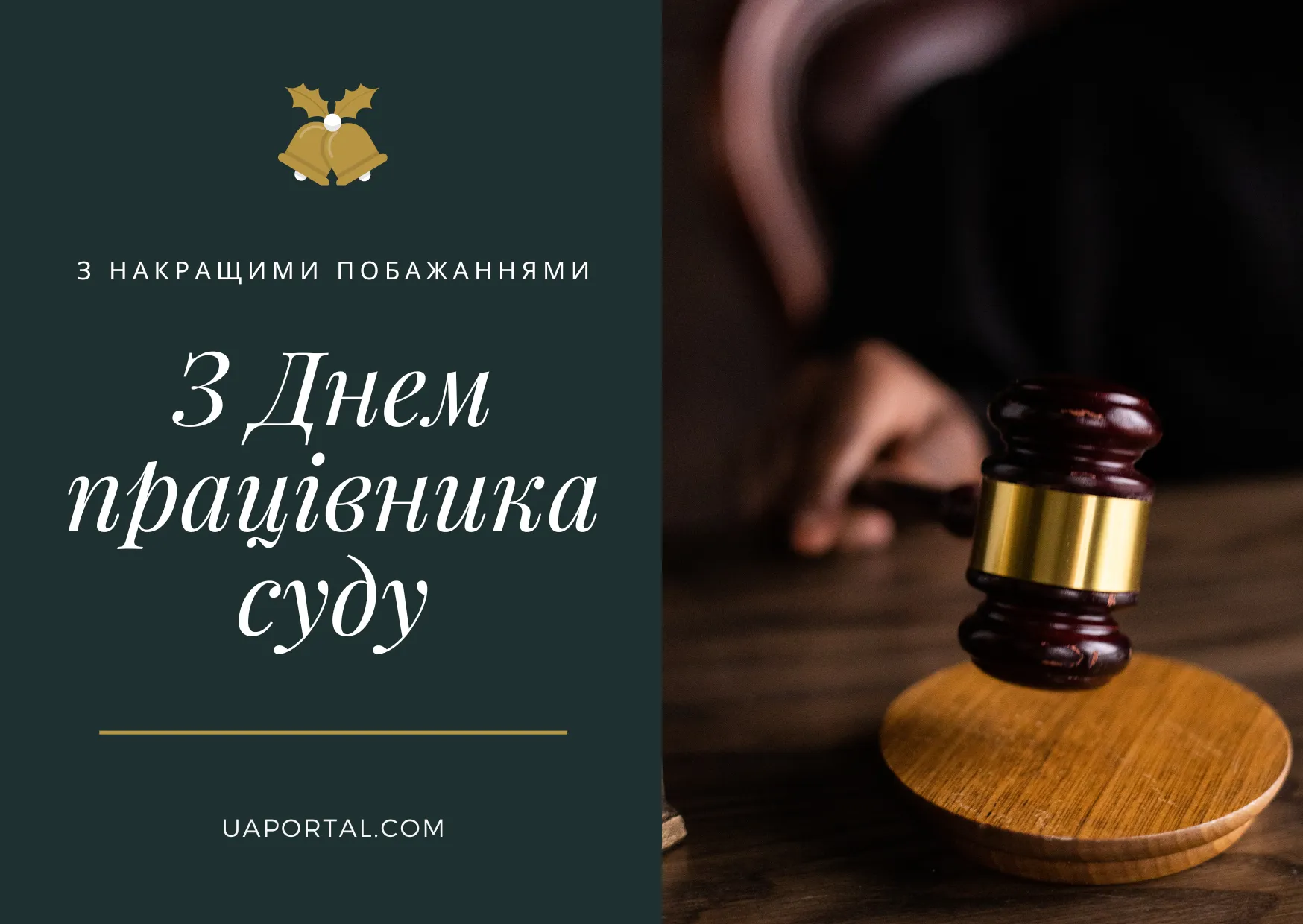 Вітаю з Днем працівників суду України! Бажаю тобі завжди залишатися на боці правди та справедливості. Нехай кожна справа, кожне питання завершується чесним вироком, а кожен день у твоєму житті приносить успіх, радість і щастя.