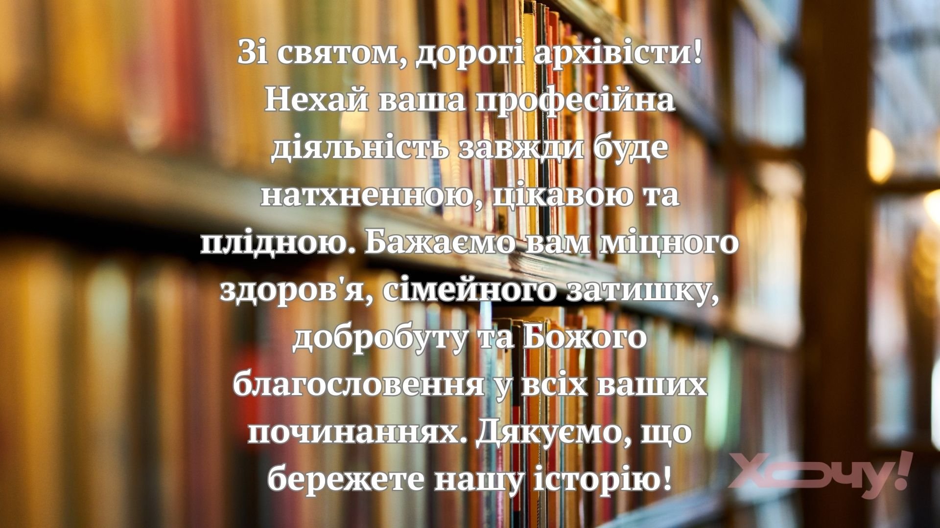 Вітаю зі святом «хранителів історії»! Бажаю, щоб кожен документ був на своєму місці, а у вашому житті панував ідеальний баланс між роботою та відпочинком. Міцного здоров’я, витримки та лише гарних новин у ваших фондах!