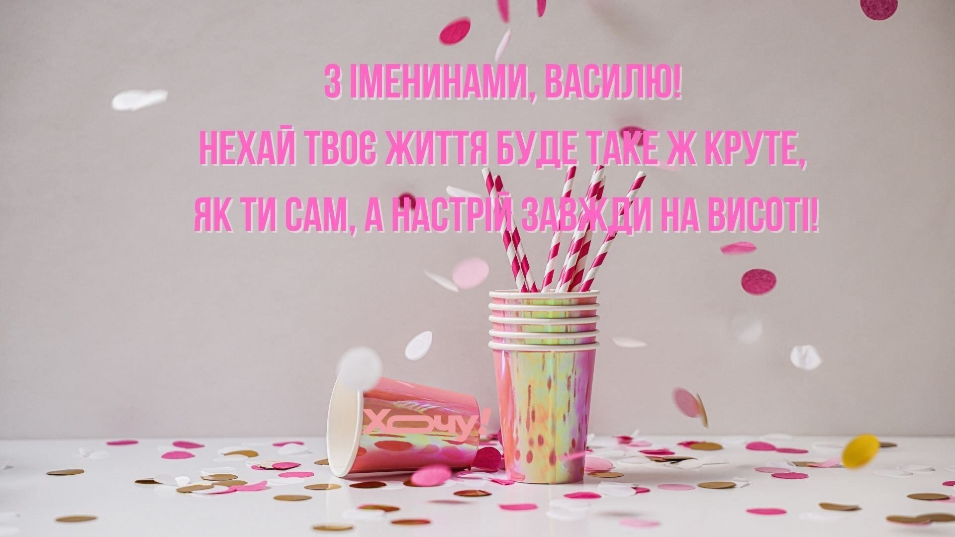 Дорогий Василю, вітаю тебе з іменинами! Бажаю, щоб кожен твій день був сповнений радості, а мрії збувалися легко і швидко. Нехай удача завжди супроводжує тебе, а поруч будуть вірні друзі та рідні люди.