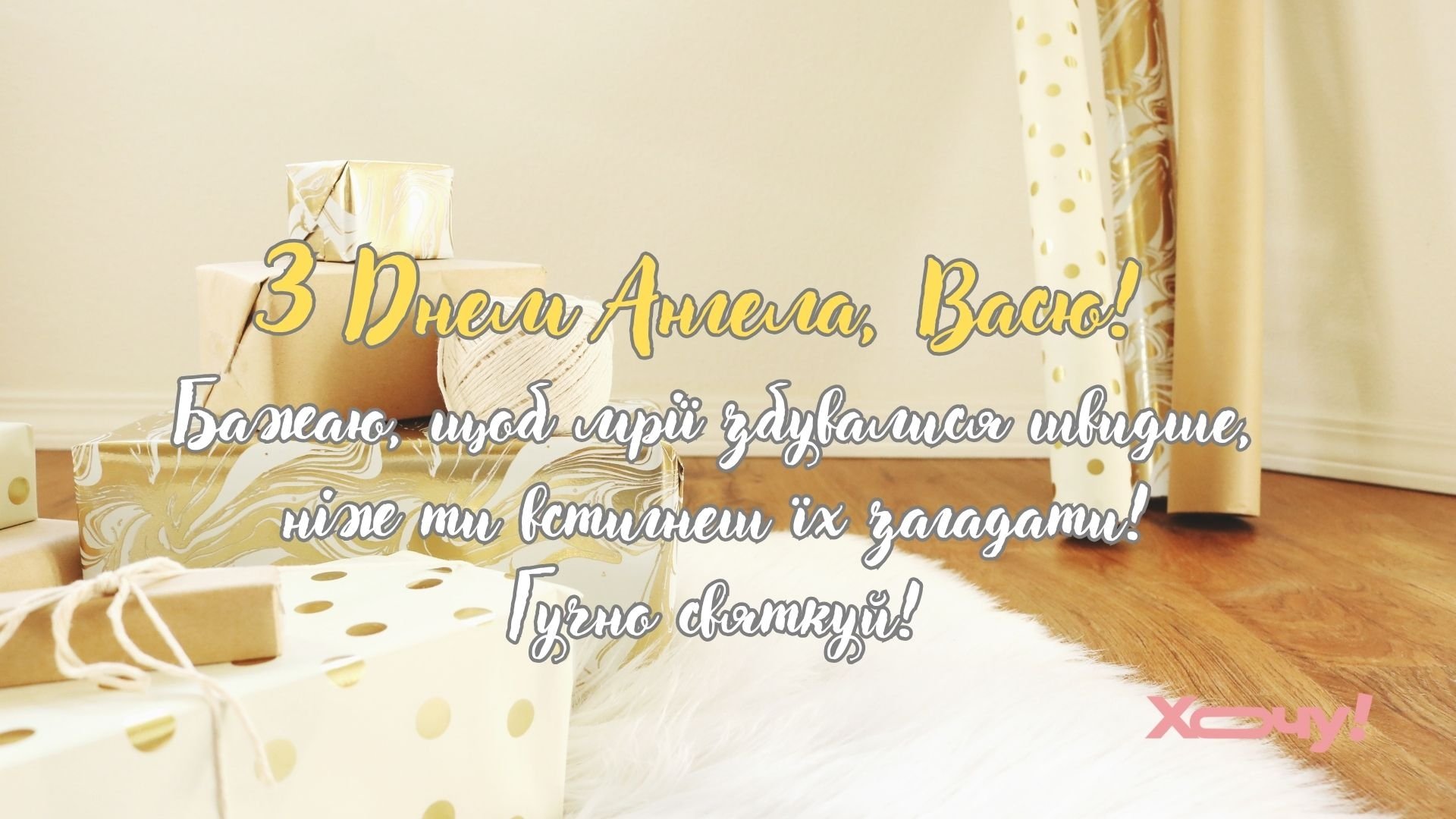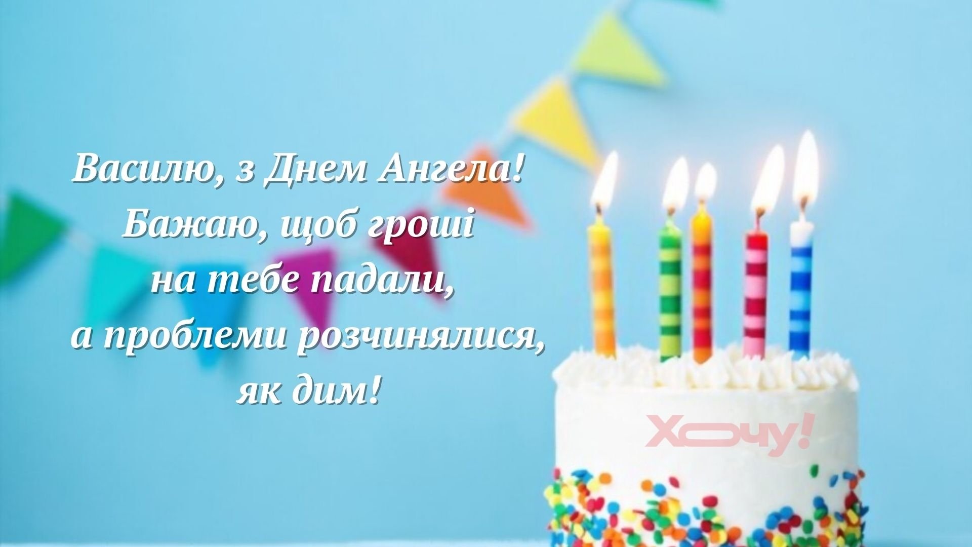 Прийми мої найщиріші вітання з Днем ангела! Бажаю, щоб кожен день твого життя був наповнений любов’ю, щастям і теплом, а твій ангел-хранитель завжди вказував тобі правильний шлях. З Днем ангела Василя!