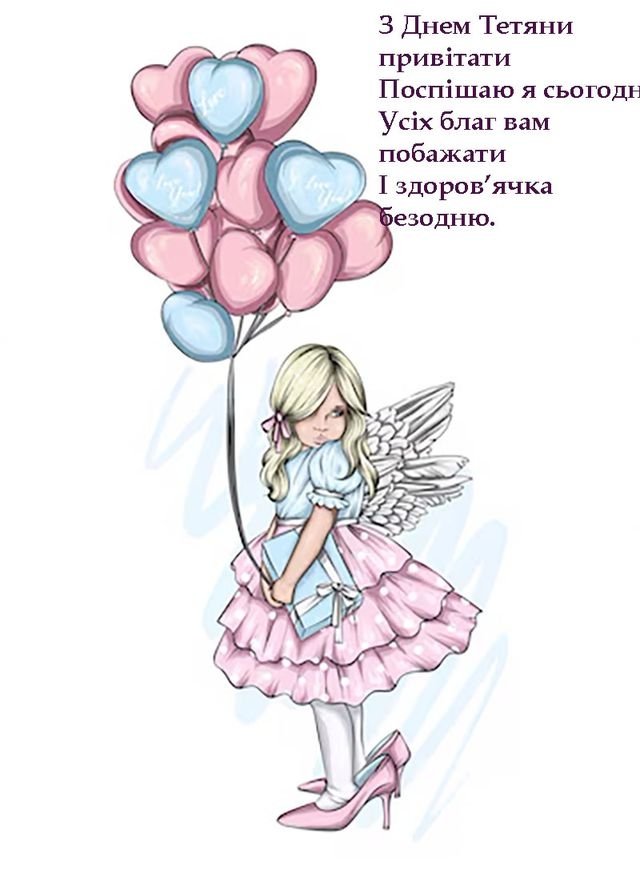 Вітаємо тебе з Днем ангела, Тетяно! Нехай ангел тебе обіймає своїми невидимими крилами, наповнюючи життя найприємнішим світлом. Нехай кожен новий день приносить тобі невичерпну енергію для здійснення мрій та невичерпний запас натхнення для досягнення великих вершин.