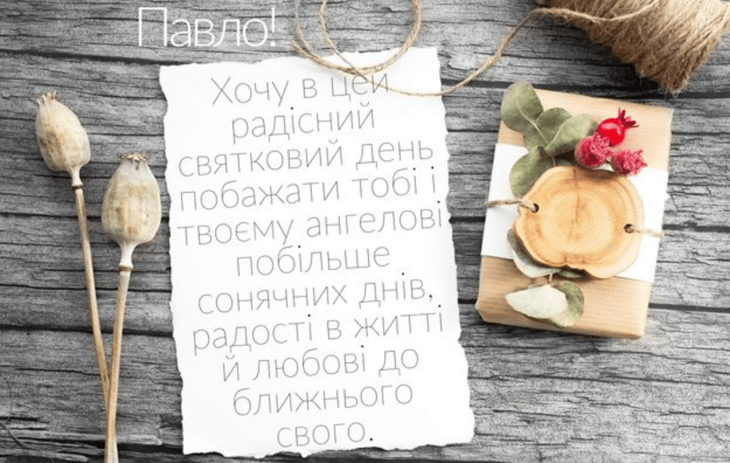 У тебе сьогодні не просто черговий щасливий день — у тебе сьогодні День ангела! Павло, бажаю тобі усіх гараздів та приємностей. Нехай мрії втілюються в життя, а люди, які поруч із тобою, нехай допомагають із цим! Насолоджуйся життям!