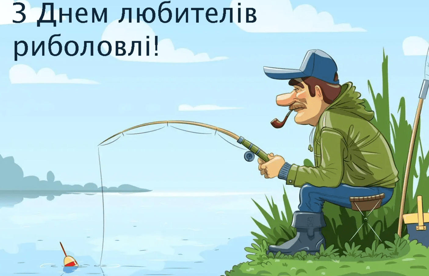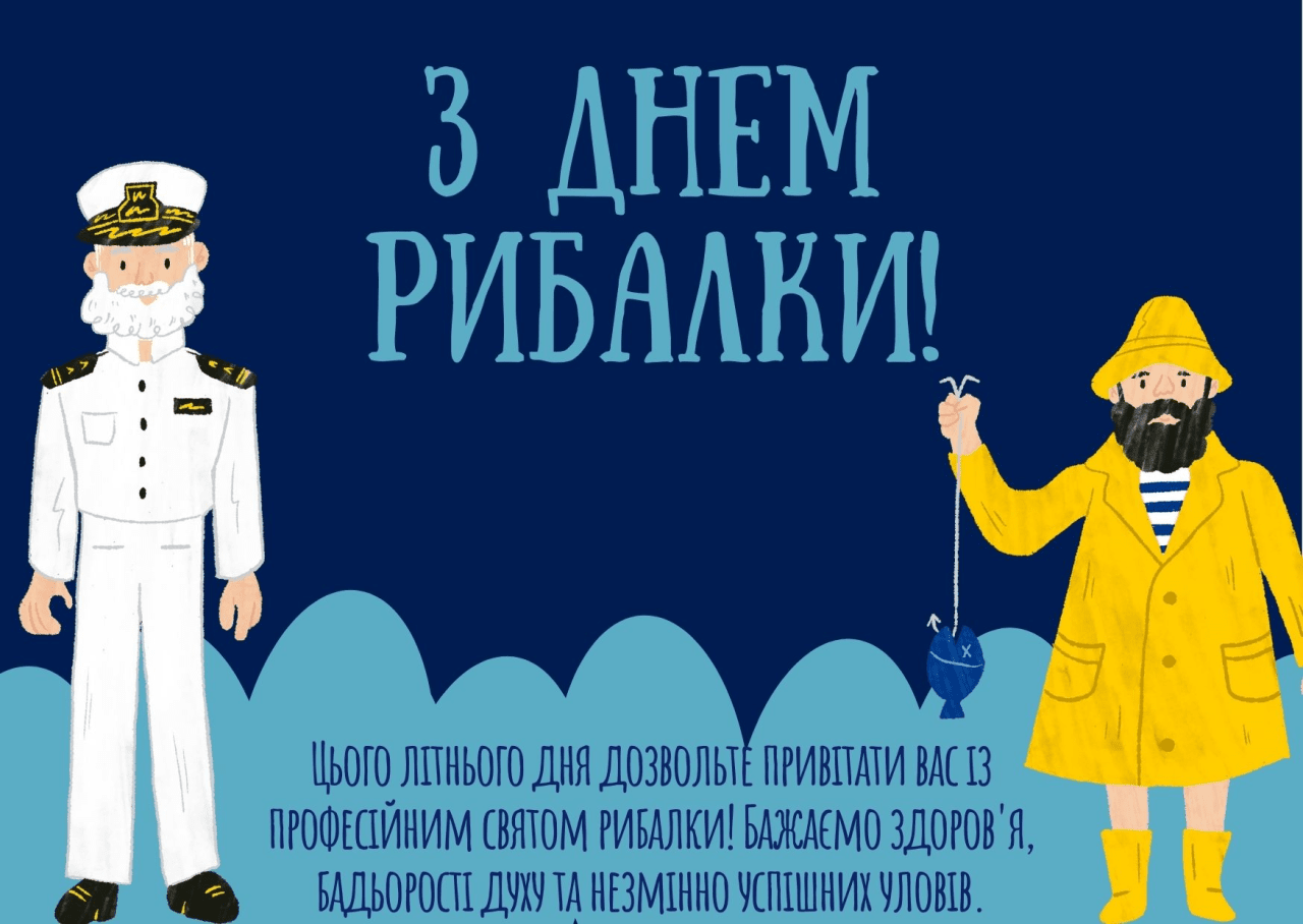 Вітаю з Днем рибалки! Бажаю, щоб ваші рибальські пригоди були завжди сповнені азарту, а кожен виїзд на природу приносив бажаний відпочинок та релакс. Нехай вода буде чистою, погода сприятливою, а улов — завжди рекордним! Міцного здоров'я та вдалих клювань!