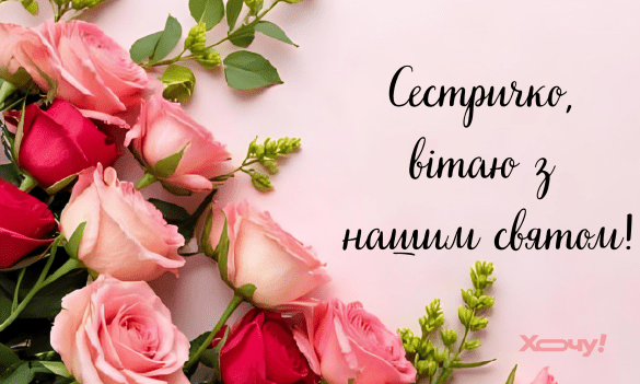 Дорога сестричко, вітаю зі святом! Ти — найкраща сестра у світі, і я дуже пишаюся тим, що маю тебе. Бажаю тобі завжди бути такою ж чарівною, сильною і веселою. Нехай у твоєму житті буде лише позитив і любов.