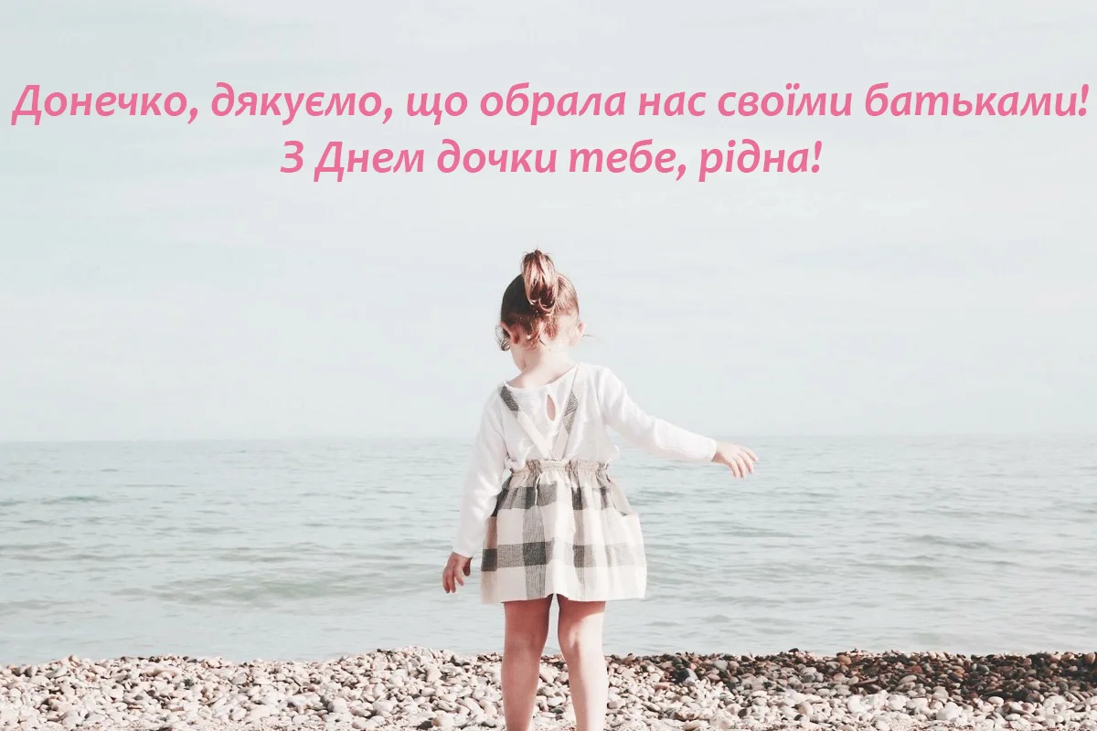 Зі святом, донечко! Бажаю тобі безмежної любові, міцного здоров'я та великих перемог. Бажаю тобі досягти всіх вершин, які ти собі намітила. Ти — моя гордість. З Днем дочки!