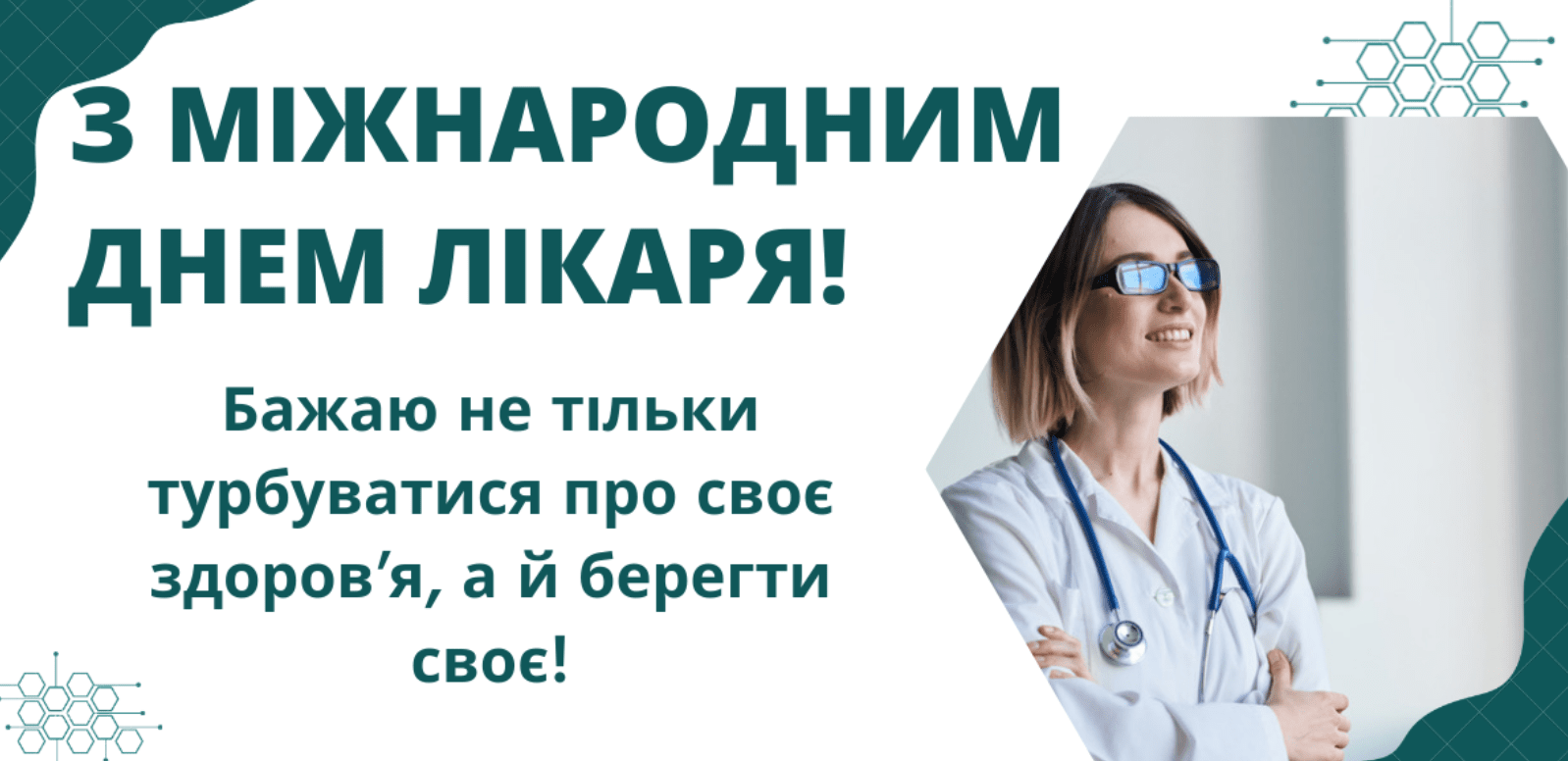 Вітаємо з Міжнародним днем лікаря! Ваші знання та вміння — це неоціненний дар, що дозволяє зберігати життя. Бажаємо вам здоров’я, натхнення і щастя в особистому житті!