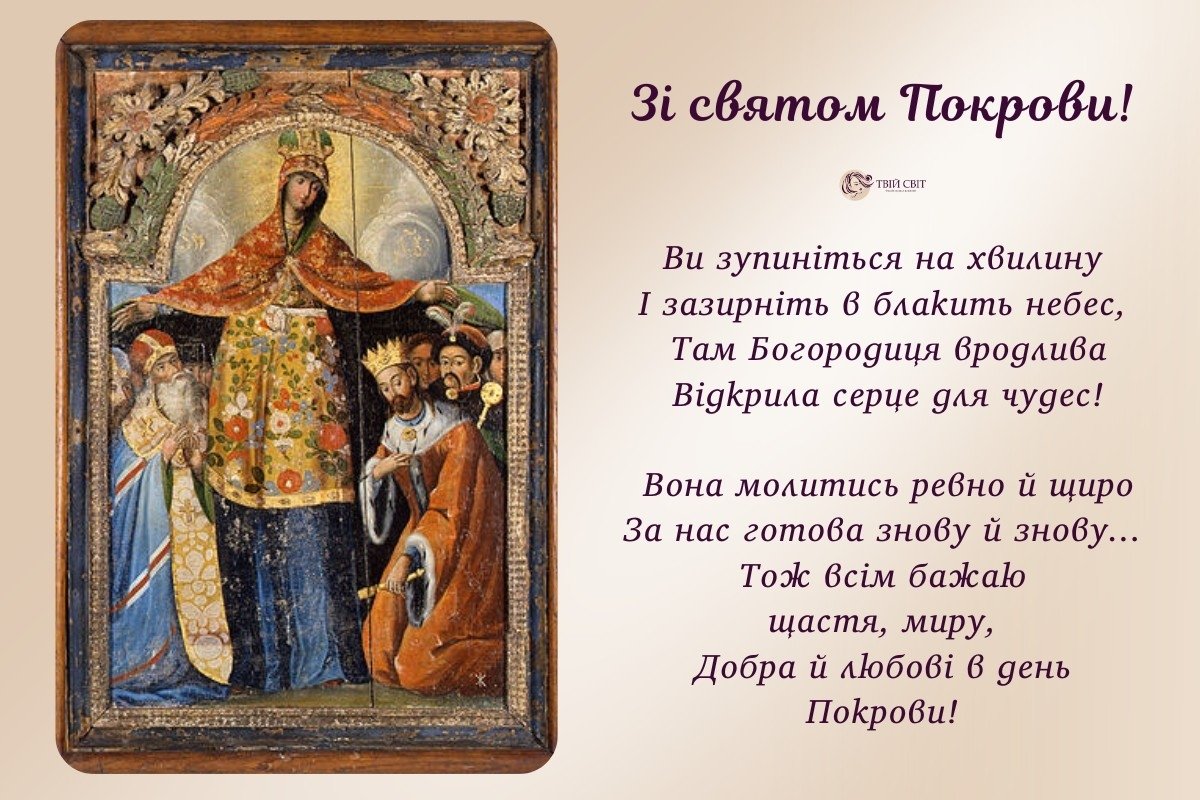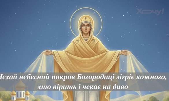 Покрова Пресвятої Богородиці символізує заступництво, опіку та милосердя Діви Марії, має глибоке історичне, релігійне та навіть національне значення. Хочу! зібрала багато теплих картинок та листівок до свята, якими ви можете поділитися зі своїми близькими.