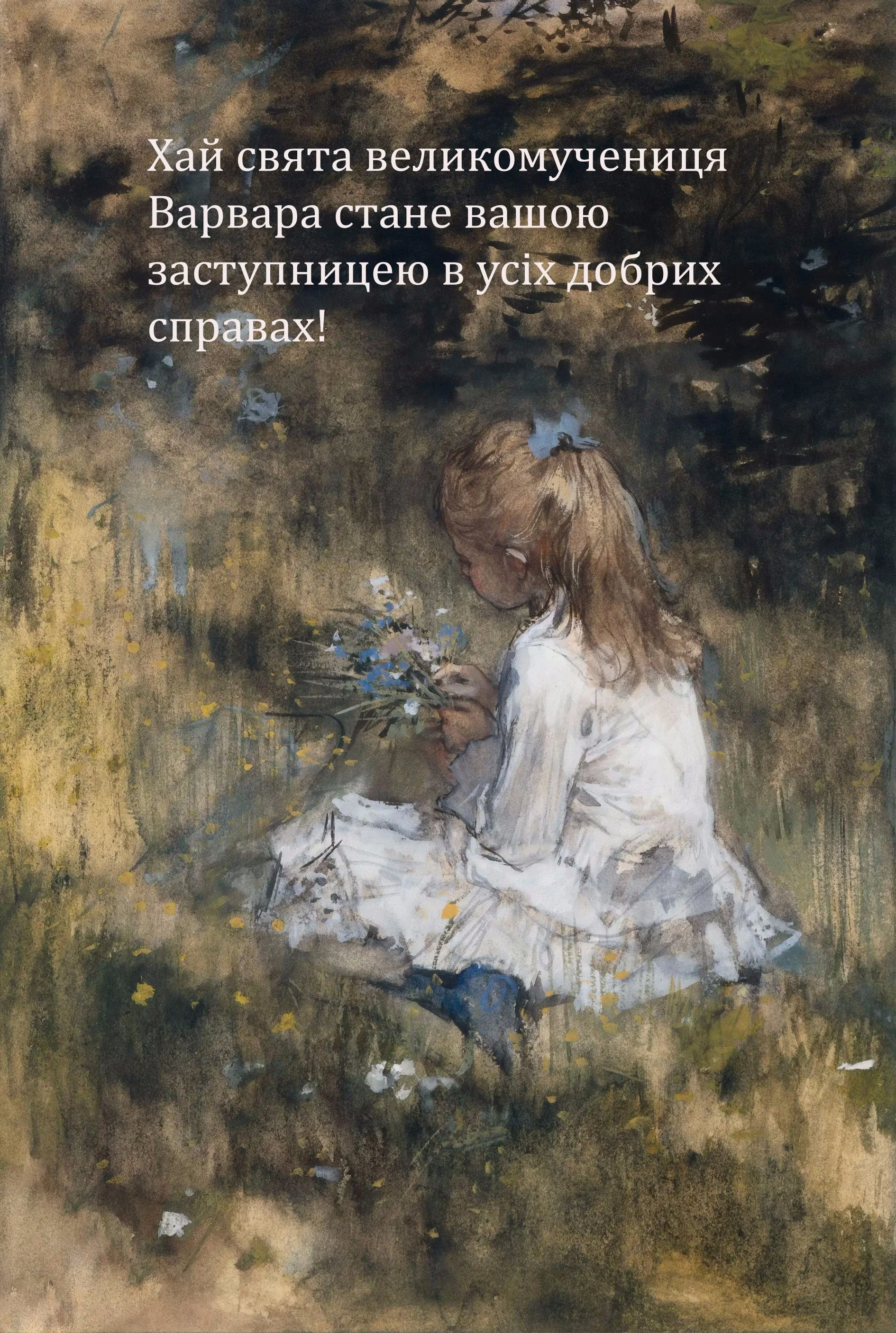 Варюша, зі святом твого небесного покровителя! Нехай твій Ангел-охоронець завжди йде попереду, освітлюючи шлях, а свята Варвара дарує тобі мудрість, красу та внутрішню силу