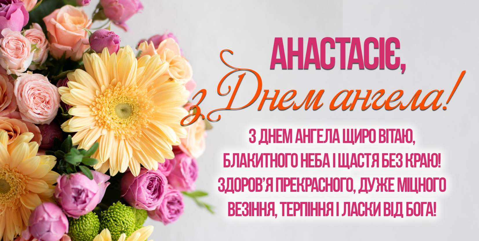 Дорога Анастасіє, з Днем ангела! Нехай Ваша небесна покровителька вбереже від бід і негараздів. Нехай кожен день починається з посмішки, а поруч завжди будуть люблячі люди. Здоров'я вам, радості та нехай виконуються всі заповітні бажання.