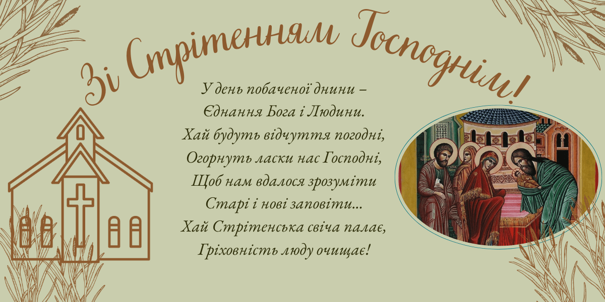 Привітання зі Стрітенням Господнім 2026 — листівки, відео, вірші та щира проза українською мовою