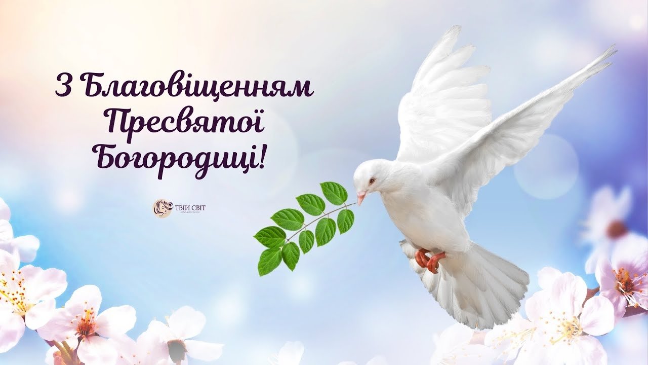 З Благовіщенням Пресвятої Богородиці! Саме в цей день Діва Марія дізналася благу звістку про те, що стане Богородицею і матір'ю Спасителя нашого, Ісуса Христа. Нехай же в це світле свято наші душі наповнюються тільки найкращими помислами, щоб в житті кожного з нас була своя блага вість.