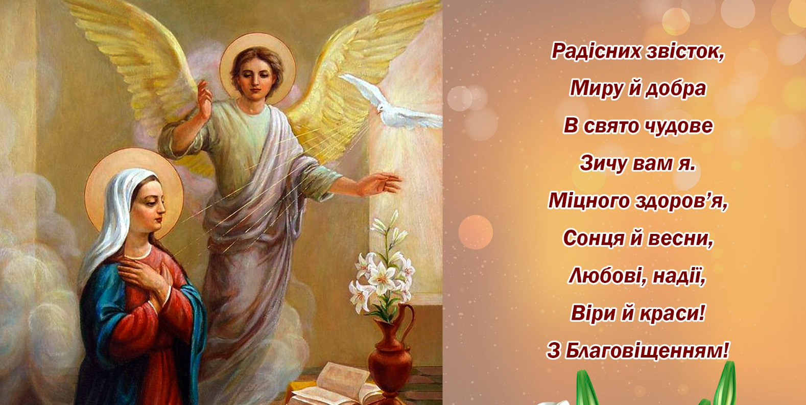 Вітаю з християнським святом — Благовіщенням! Нехай всім це свято принесе багато добра, радості і добрих справ. Господь винагородить вас міцним здоров’ям і щасливими днями.
