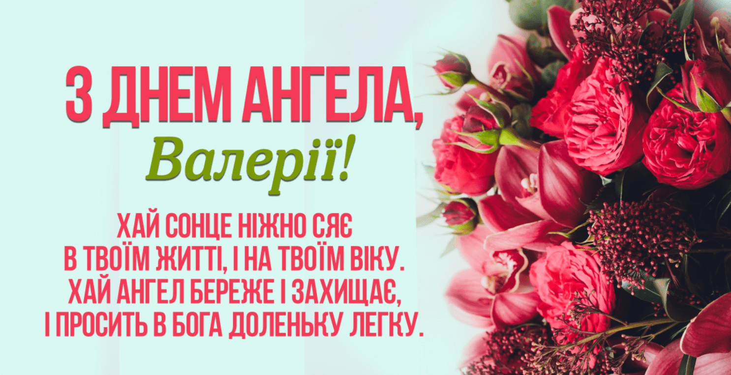 Щиро вітаю тебе з красивим святом – Днем ангела Валерії! Хочу в цей день побажати тобі тільки одного: хай твій Ангел-охоронець допомагає тобі летіти, навіть якщо твої крила опускаються вниз!