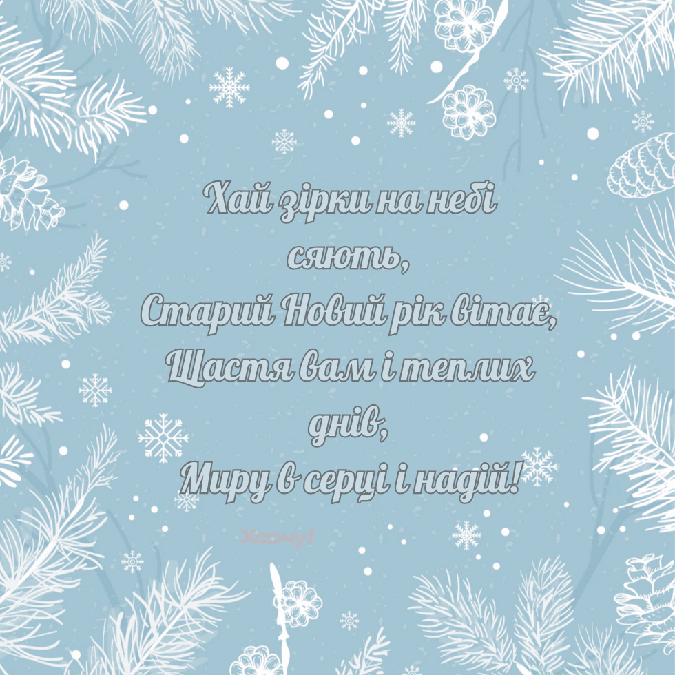 Нехай цей Старий Новий рік відкриє перед тобою нові горизонти та можливості. Бажаю любові в серці та впевненості в кожному кроці.