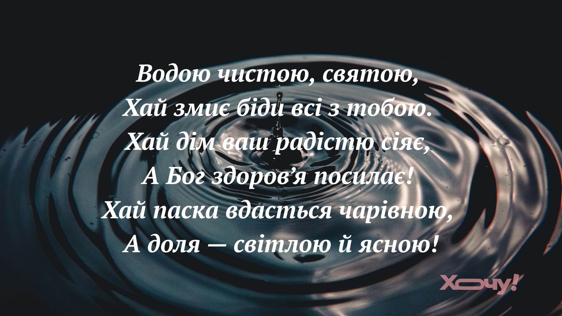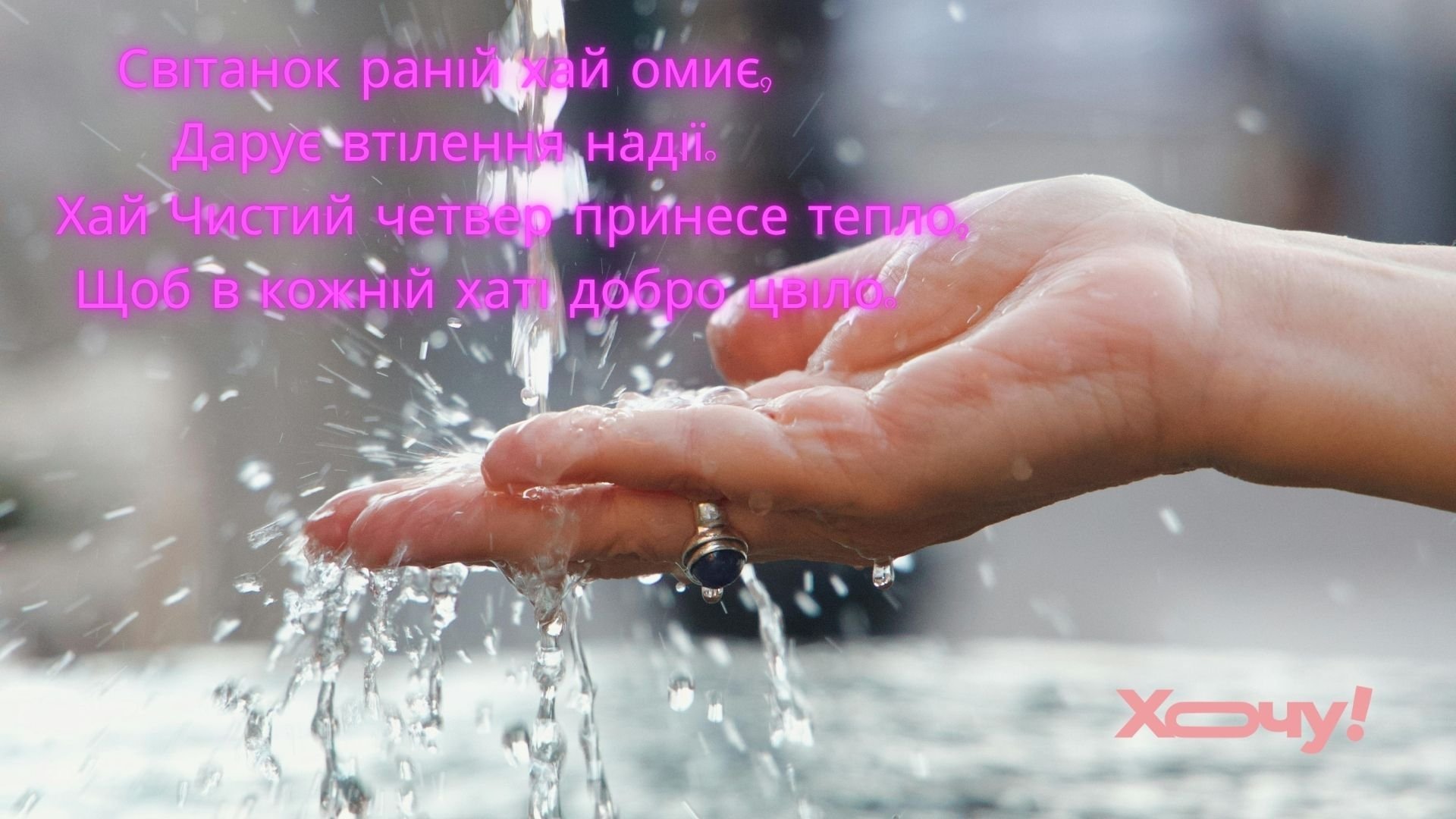 Хай у Чистий четвер водиця змиє з тебе всі тривоги і печалі, хай підуть з твого будинку всі лиха і негоди, нехай залишиться в душі світле щастя і радість, нехай позбавиться серце твоє від смутку і образ, але не втратить віри у все хороше і надії на краще.