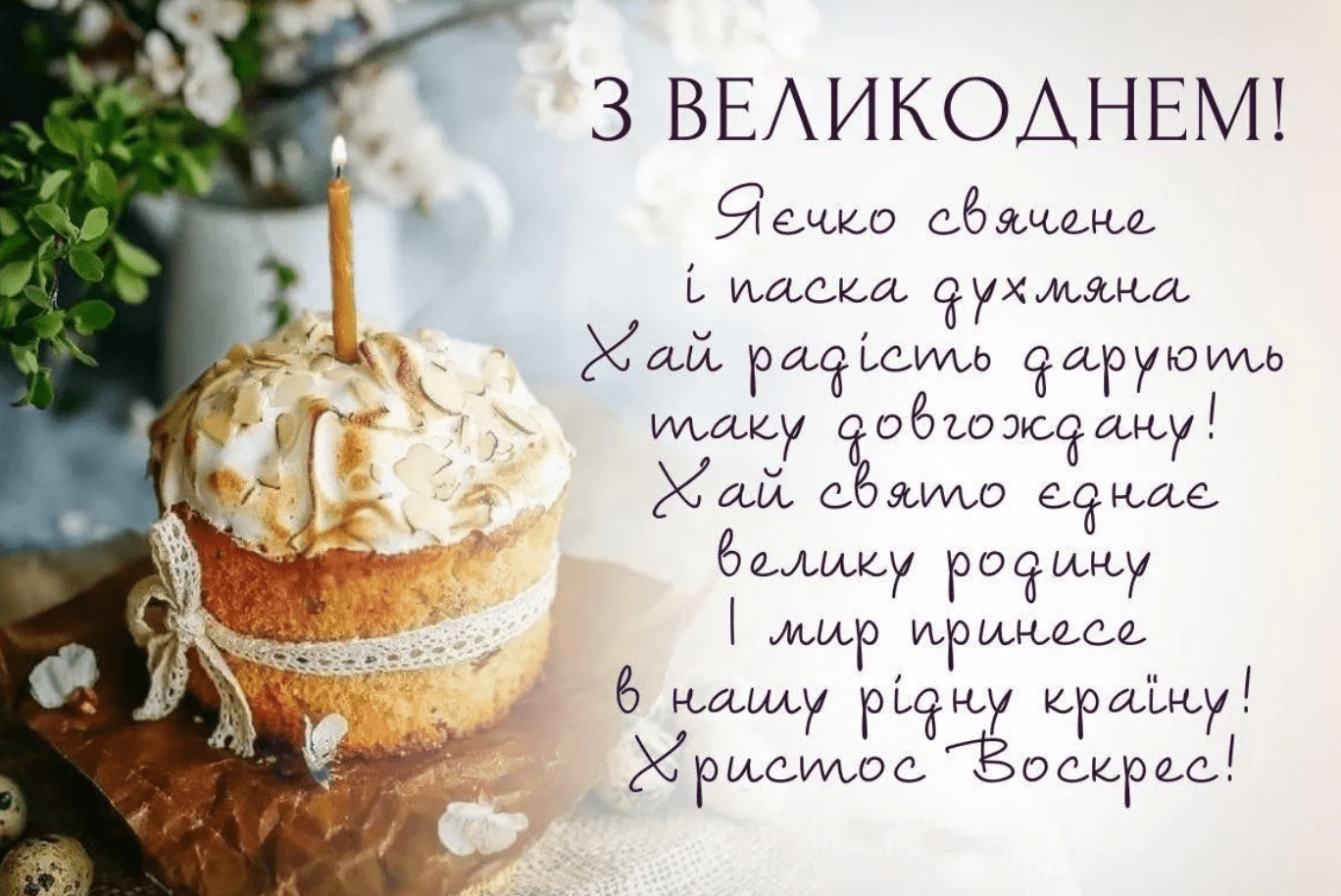 Ось і наступило світле свято Великодня, свято, що об’єднує мільйони людей по всьому світу навколо віри в торжество добра та давніх традицій. У цей святковий день ми будемо вітати один одного щирими словами від усього серця, ділячись радістю від знаменної події — Воскресіння Христа.