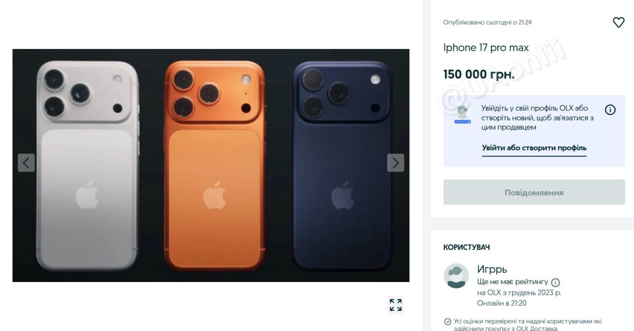 Продаж iPhone 17 на OLX. Скриншот з мережі