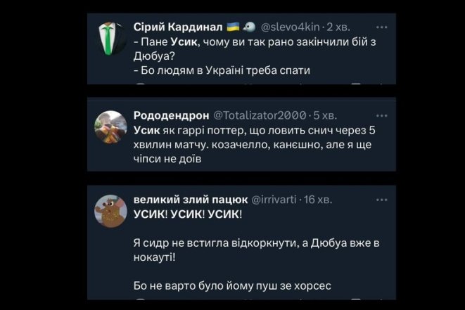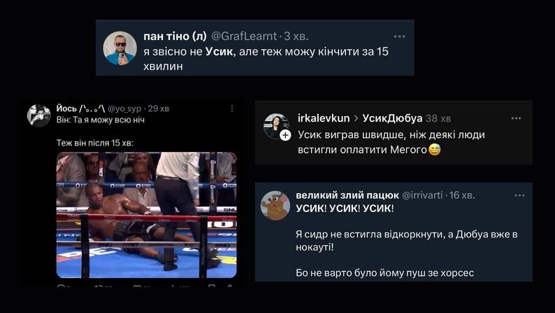 Українці жартують, що Усик, як ДТЕК, швидко “гасить” світло. Глядачі скаржилися на надто швидкий бій, адже вже у 5 раунді Усик відправив Дюбуа відпочивати і став триразовим абсолютним чемпіоном у надважкій вазі.