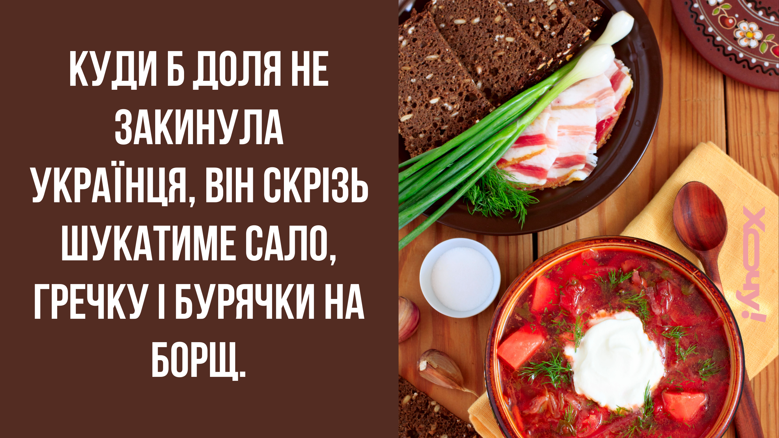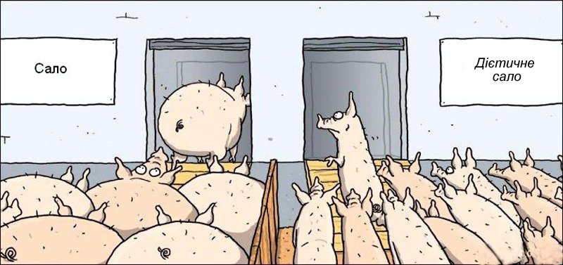— Те ж й я думаю, чому коли зранку сальця з’їм, то цілий день не згадую, що їсти хочеться…
