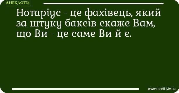 — Добре, — відповідає нотаріус, — а хто буде спадкоємцем, якщо, скажімо, один із них помер раніше?
