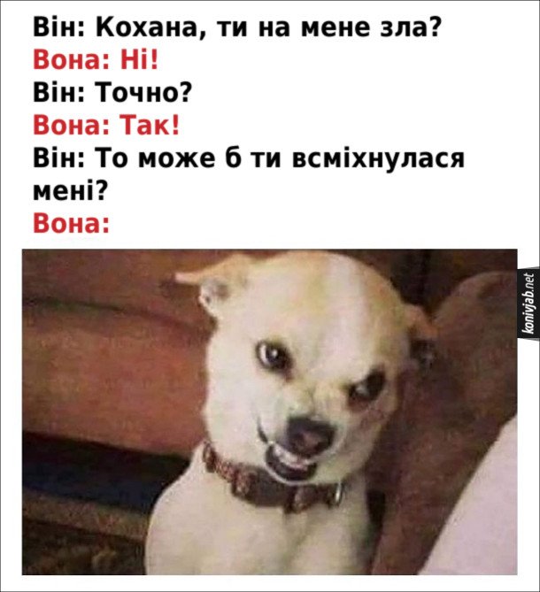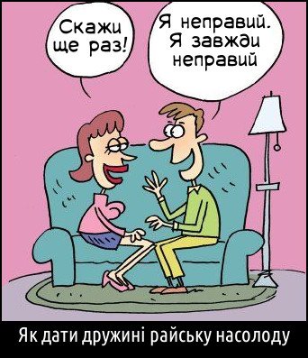 Моя дружина не ображається, вона просто тимчасово перестає розуміти, що таке гумор.