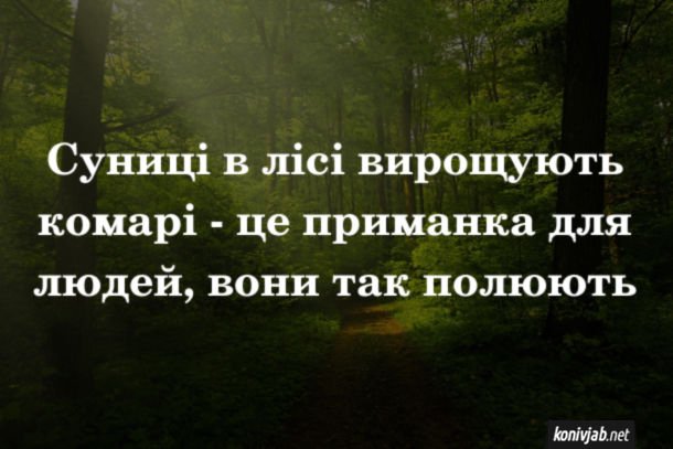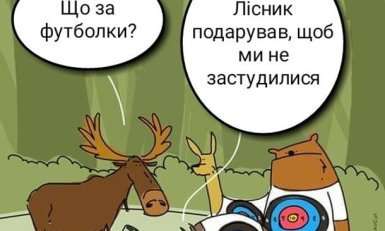 — Навіщо лісникові камуфляжна форма? — Щоб його не було видно, коли він ловить браконьєрів. — А на що браконьєри ловлять лісників? — На гриби та ягоди!
