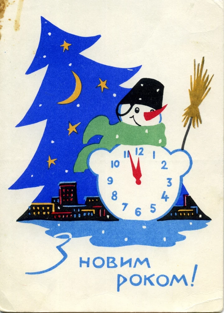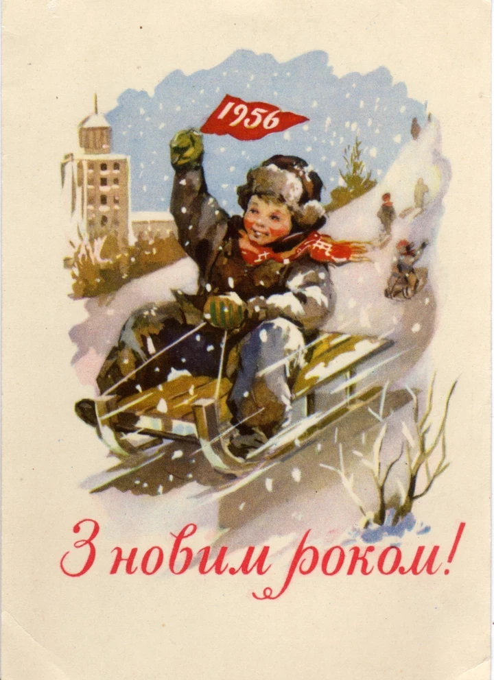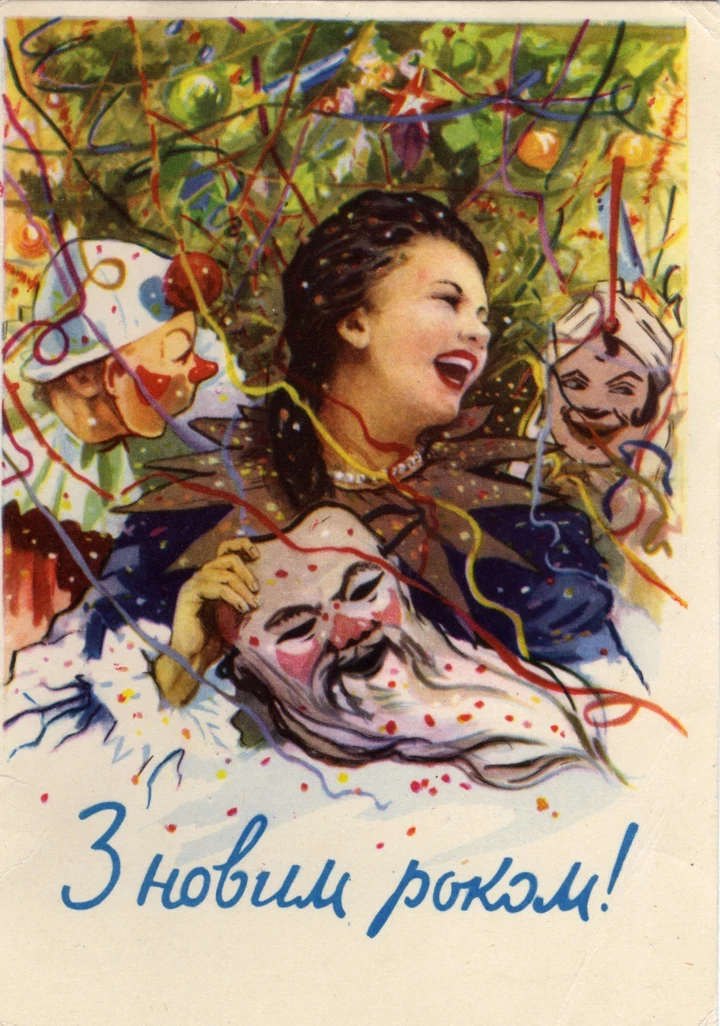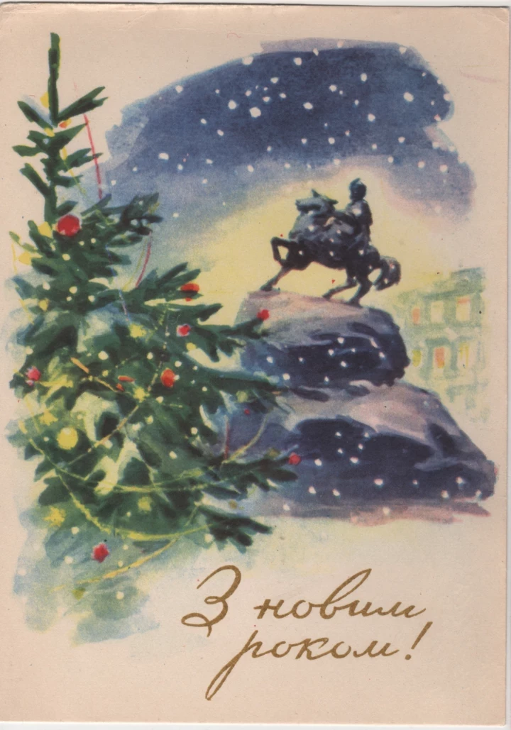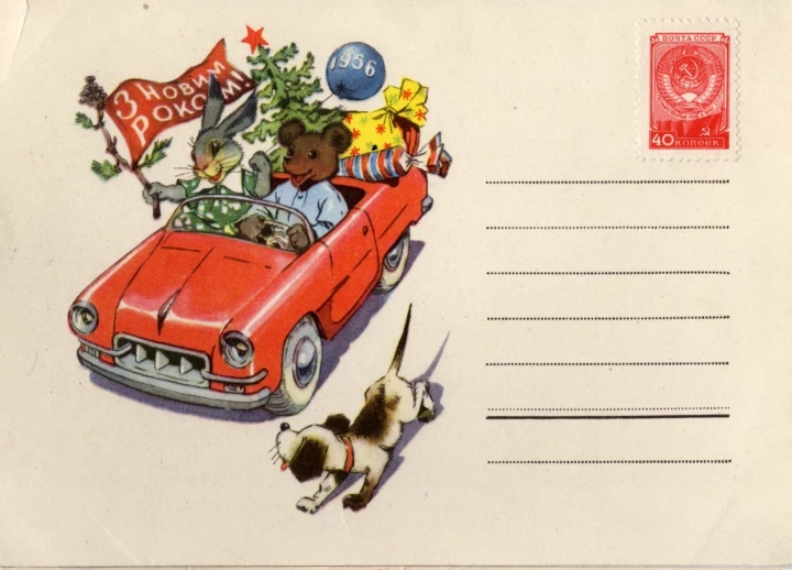 Після Другої світової війни радянські солдати надсилали рідним іноземні новорічні листівки з різдвяними мотивами: зима, ялинка, подарунки та ялинкові іграшки.