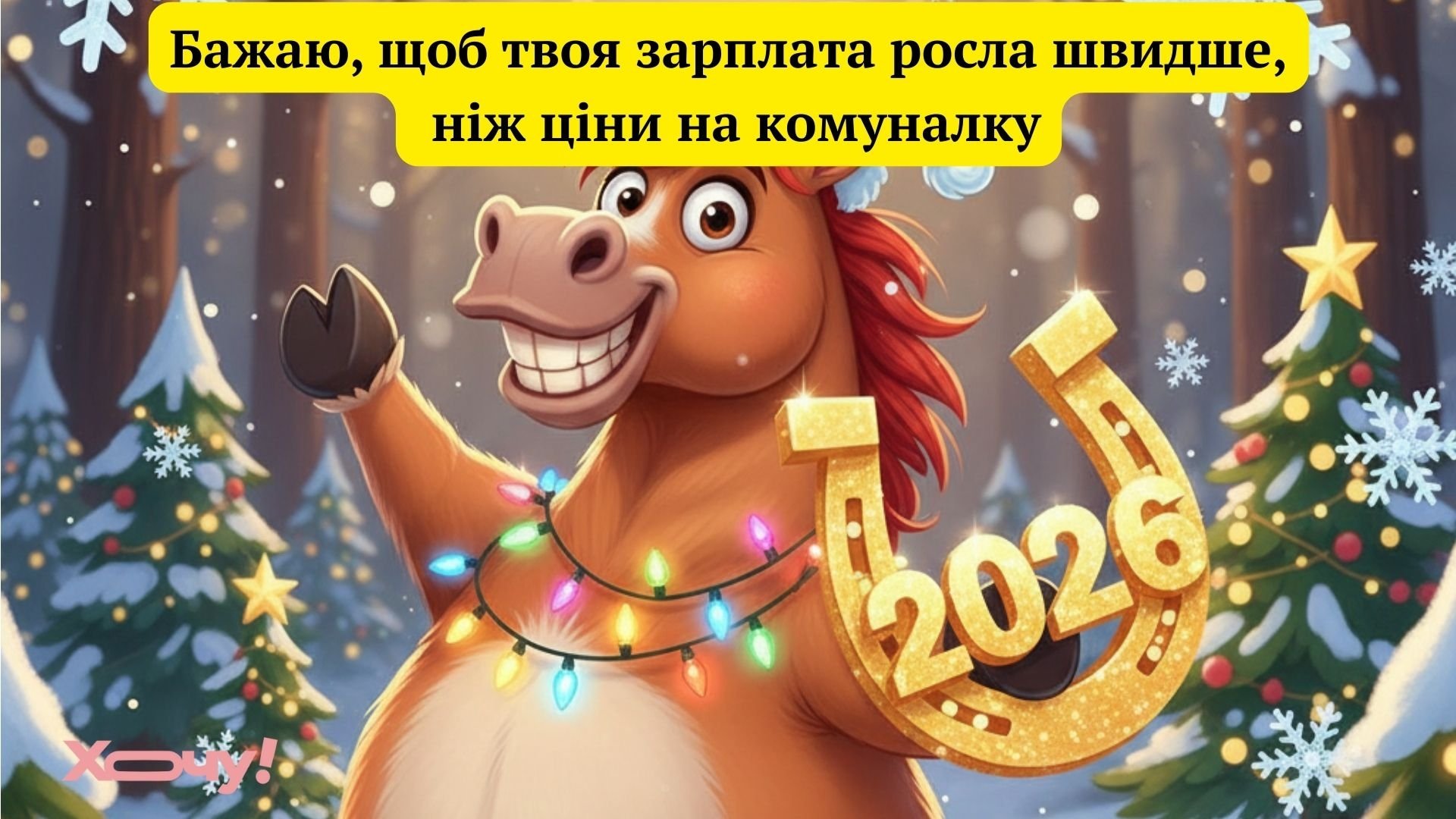 Бажаю, щоб у цьому році ти працював як кінь, але отримував як арабський шейх.