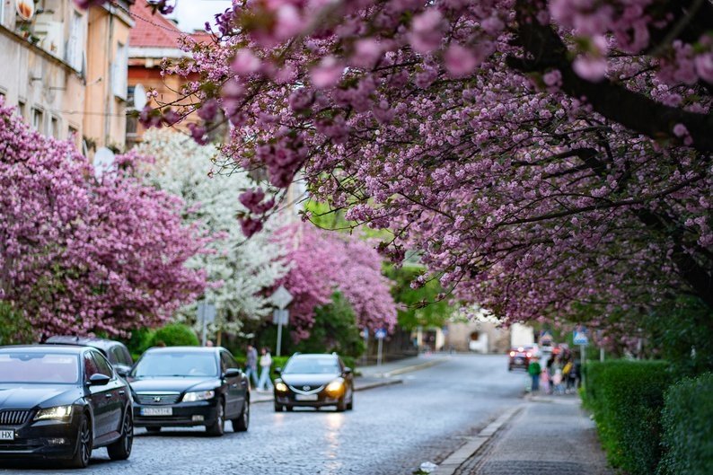 Одне з найзеленіших міст України, проте головним весняним кольором тут є не зелений, а… рожевий, адже сакура тут символ міста.