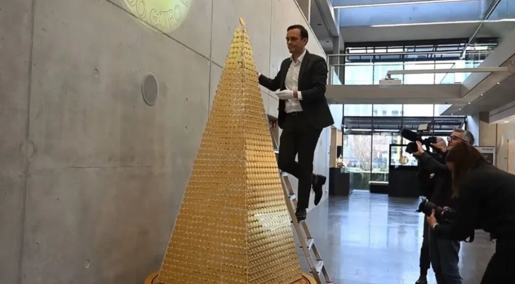 У Мюнхені прикрасили новорічну триметрову красуню інсталяцію з чистого золота. Вона коштує майже 5,5 млн доларів. Вона вперше приголомшила світ у грудні 2024 року, ставши найдорожчою ялинкою Європи. Інсталяція складається з 2024 золотих монет серії “Віденська філармонія”. Кількість монет символізувала рік створення, А важить цей витвір понад 60 кг. Замість традиційної зірки або ангела, піраміду вінчає величезна монета вагою 567 грамів.