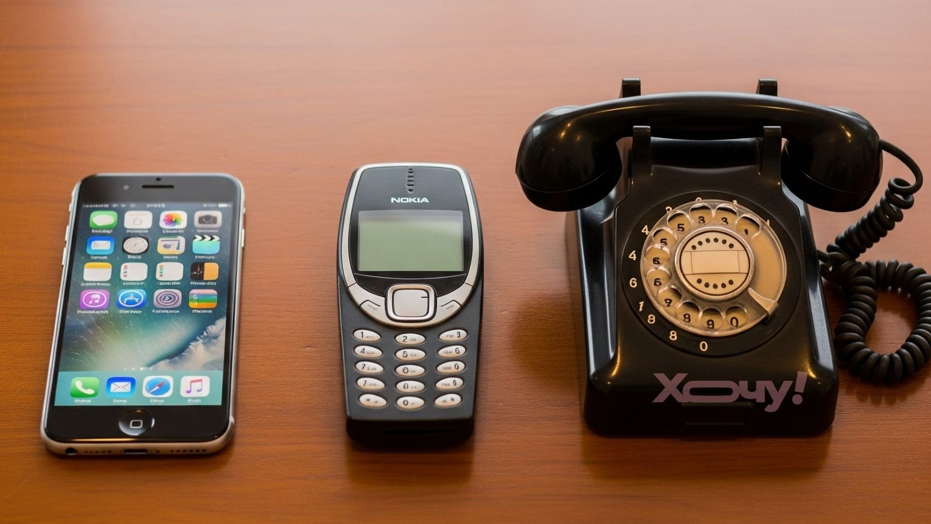 Подивіться на малюнок, на якому айфон, перша Nokia та дисковий телефон. Ваш вибір покаже погляди на світ.