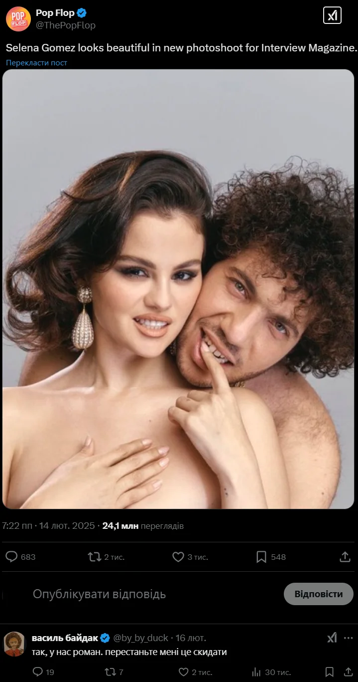 А ще Василь Байдак здобув славу "нареченого Селени Гомес". Пояснюємо. Річ утому, що Вася та Бенні Бланко мають дуже схожі образи та зовнішність. Комік сам на цьому "грає", жартуючи, що в нього та американської співачки — таємний роман.