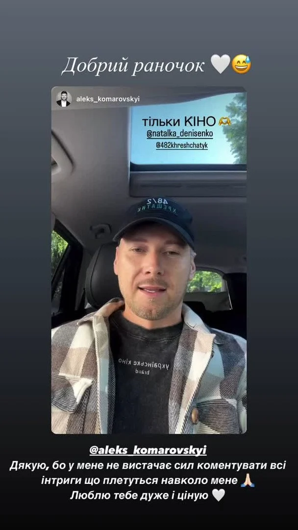 Згодом і Денисенко зробила репост заяви режисера, фактично підтримавши його слова. У своїй відповіді акторка щиро подякувала Комаровському за чесність і водночас поділилася особистим: