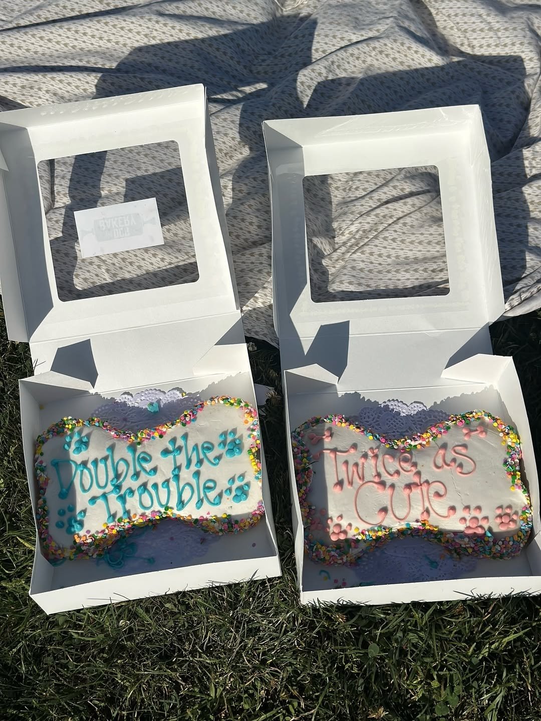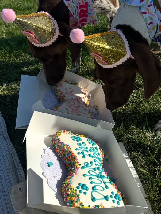 Улюбленці Клум були святково вбрані: на шиї у них були бандани рожевого та блакитного кольорів, а на голові - святкові ковпаки з помпонами. Для кожного песика Гайді підібрала тортик з декором у відповідній колірній гамі. Тваринки з задоволенням ласували смаколиками.