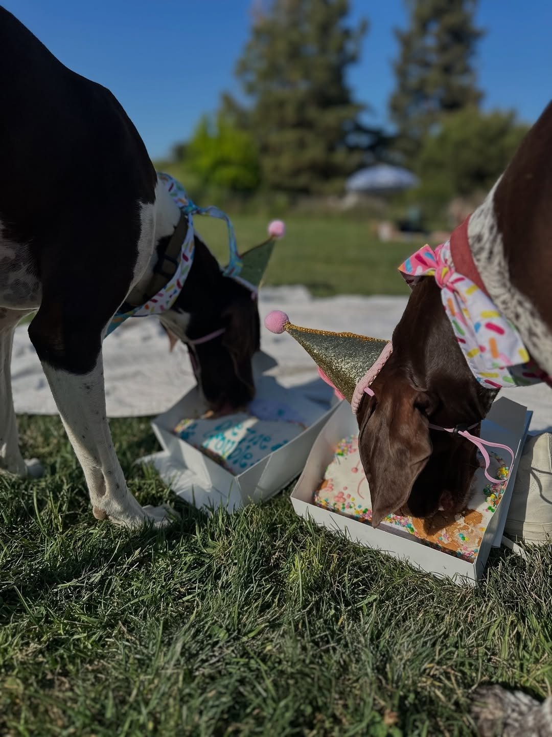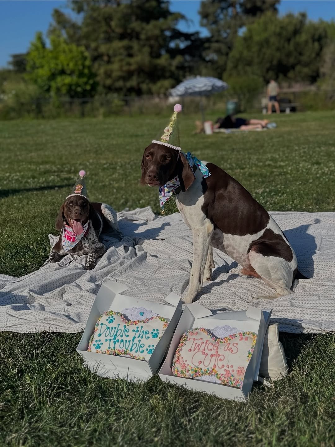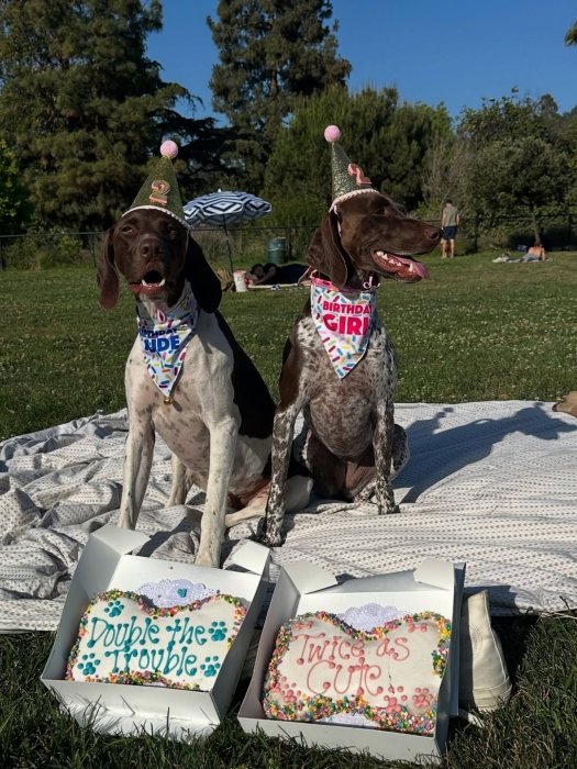 52-річна німецька супермодель Гайді Клум опублікувала серію кумедних фото своїх двох собак породи німецький короткошерстий пойнтер. На них знаменитість показала, як привітала пухнастиків на прізвиська Uschi та Jäger з другим днем народження.