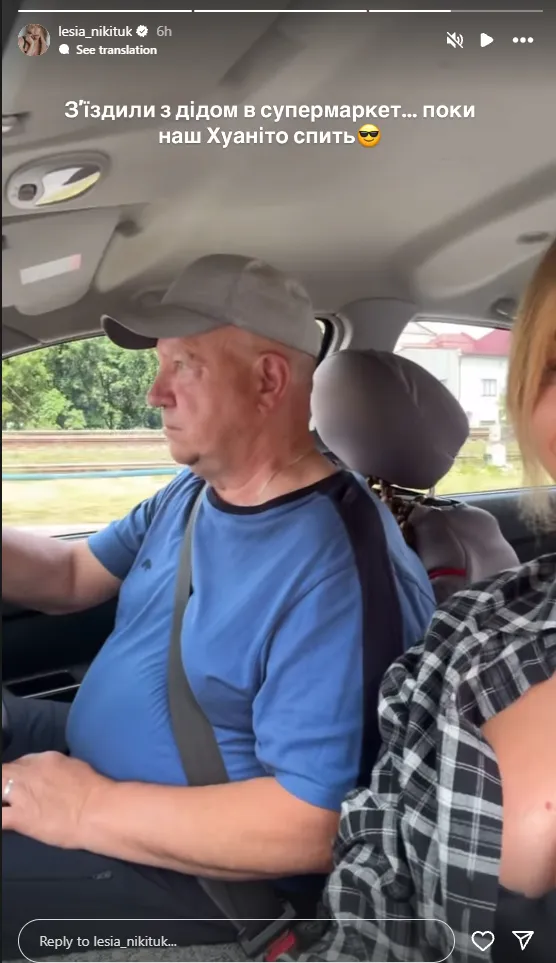 Вона поділилася відео в Instagram-stories, де разом із татом Іваном Нікітюком їде за покупками, поки її малюк спить. На ролику Леся знову додала ще одне жартівливе прізвисько до списку ніжних звернень до сина.