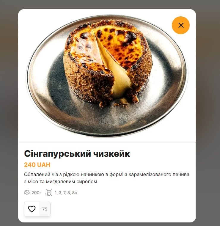 На сайті ресторану вказано, що "Сінгапурський чизкейк", який, імовірно, став причиною отруєння, коштує 240 гривень за порцію в 200 грамів. У його складі – рідка начинка та карамелізоване печиво. Сам ресторан відкрили у Львові 13 липня, а вже 16 липня почали з’являтися перші повідомлення про масове отруєння.