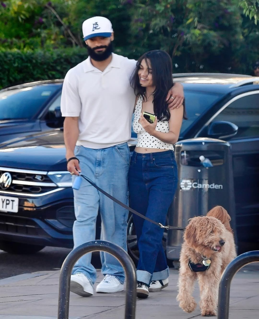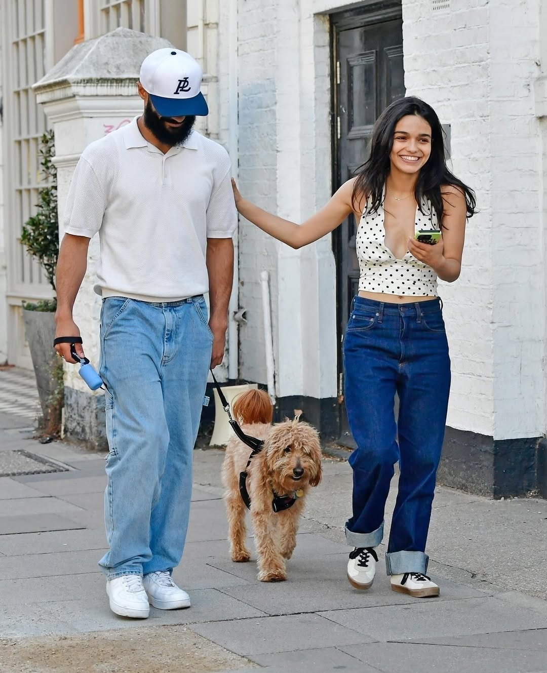 Водночас Натан мав стильний вигляд у білому поло, блакитних джинсах, білих кросівках та бейсболці. У руці він тримав чорний повідець, який кріпився до такого ж кольору шлеї домашнього улюбленця.