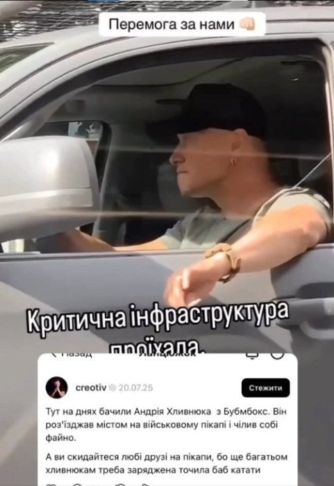 У соцмережі Threads один з користувачів написав, що нібито бачив Андрія Хливнюка в місті, де той, за його словами, "чілив на військовому пікапі". Після хвилі обурення цей допис було видалено, однак ситуація набула резонансу.