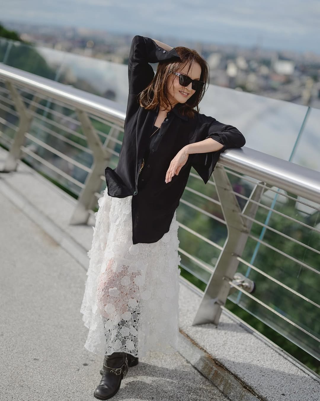 На нових світлинах, що зʼявилися в Instagram-акаунті зірки, видно, що вона прогулювалася мальовничими куточками Києва. Зокрема артистку можна було побачити на Скляному мості та Андріївському узвозі.