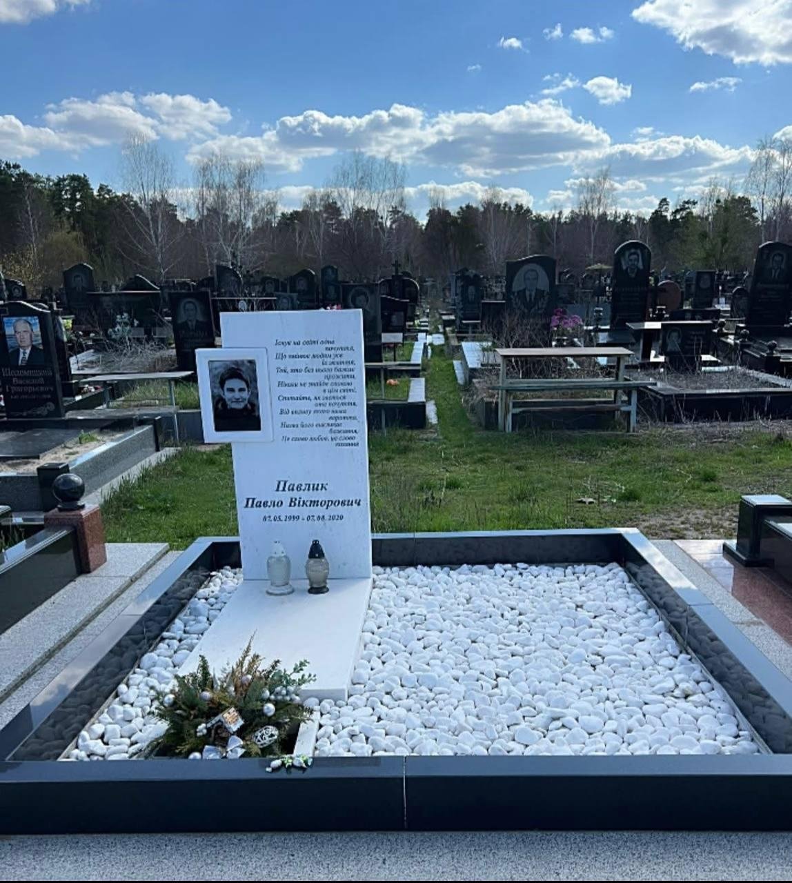 Могила Павла доглянута до дрібниць: світла галька, лампадки, квіти та памʼятник із портретом юнака. Біля зображення викарбувані теплі слова, що нагадують про нього як про людину, яка залишила слід у серцях тих, хто його знав.