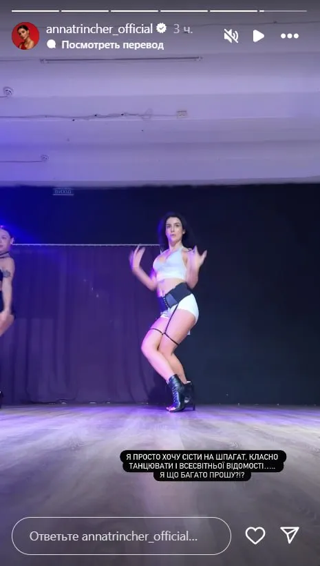 Артистка зазначила, що має як побутові бажання, так і масштабні амбіції. У дописі Трінчер чесно перелічила, чого прагне: сісти на шпагат, танцювати ще професійніше та досягти всесвітньої відомості.