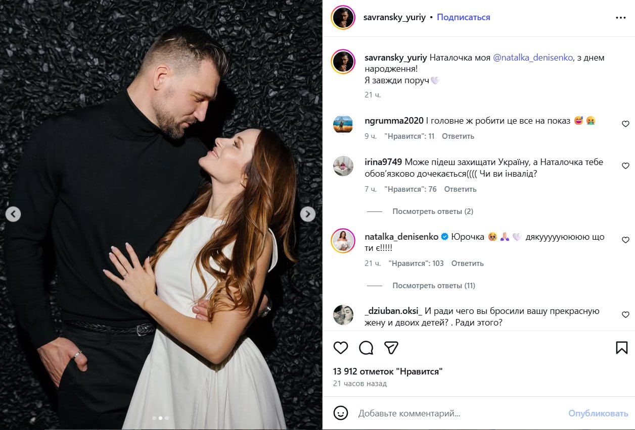 Нагадаємо, раніше Наталка Денисенко сама підтвердила чутки про нові стосунки, публічно зізнавшись Юрію у коханні. Після цього пару дедалі частіше помічають разом на публічних заходах.