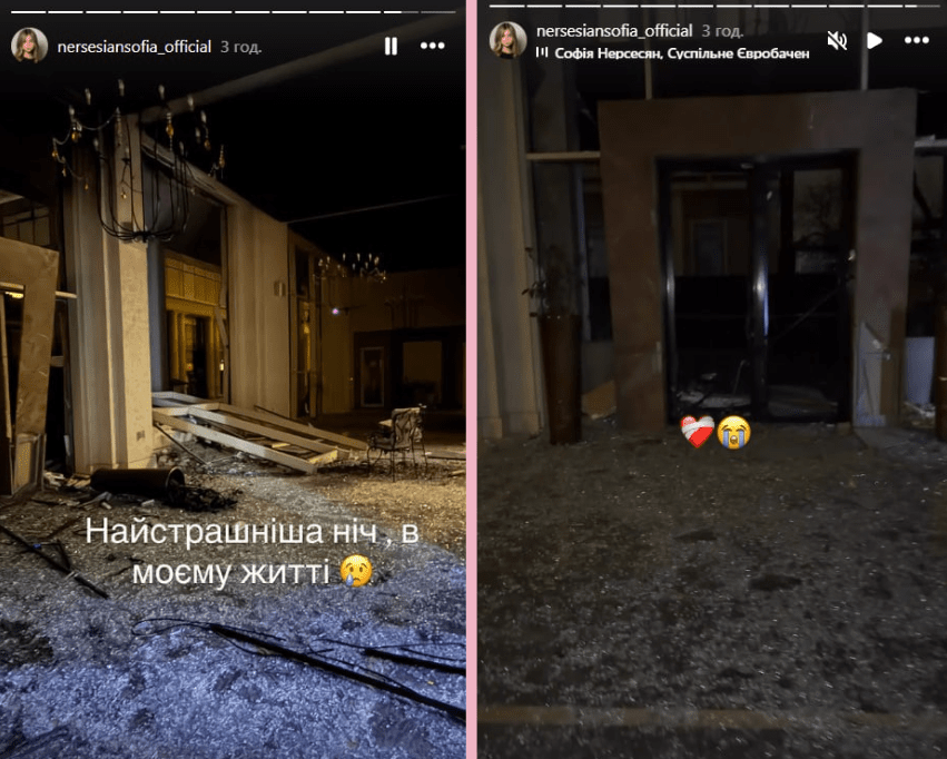 Софія поширила в Instagram фото-історії, де показала наслідки атаки та свої емоції в той момент. Кадри відображають масштаб подій і жахливу атмосферу нічної тривоги в Києві.