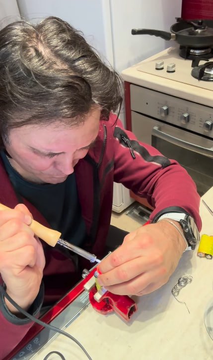 Суть ідеї проста: усього лиш потрібні дві пальчикові батарейки, з’єднані між собою, і світлодіод, припаяний до випуклого контака (+). Такий крихітний “світлячок” не забирає багато місця, але може врятувати в темряві — на сходах, у коридорі чи в кімнаті. Віталій Борисюк показав процес створення й запевнив, що повторити це під силу навіть тим, хто далекий від техніки.