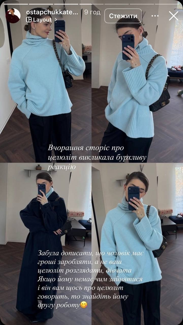 Катерина Остапчук про целюліт. Скрин: instagram.com/ostapchukkaterynaa
