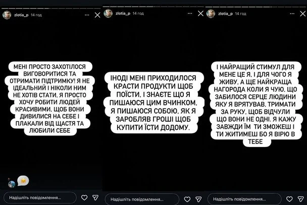 Сториз колишнього нареченого MELOVIN. Скриншот: instagram.com/zlotia_p