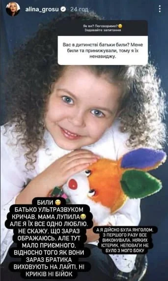 Що не зрозуміло для Аліни Гросу, так це те, що попри слухняність батьки всеодно вдавалися до жорсткого методу виховання:
